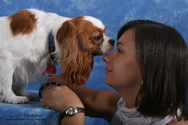 Als meine Tochter klein war, wohnten wir direkt am „Hagenbeks Tierpark“. Dort waren wir - als „Dauerkartenbesitzer“ – fast täglich Besucher dieses weltberühmten Zoos. 2004 sah ich dann in einem Hamburger Cafe einen Cavalier King Charles Spaniel - in der Farbe „blenheim“. Da war es um mich geschehen: Ich habe mich verliebt - in diese süße, freundliche Hunderasse. Sofort sah ich mir im Internet Cavalier King Charles-Seiten an. Auf der Website der Blue Magic´s Cavaliere fand ich, wonach ich suchte: Wunderschöne Cavaliere, aus besten Linien, mit besten Stammbäumen und mit niedlichen Gesichtchen. Einen solchen Cavalier wollte ich nun auch haben. Einige Zeit war noch zu warten. Währenddessen habe ich einige Cavalier-Bücher gelesen. 2007 war es dann soweit: Ich holte sie überglücklich ab – meine Samira, bei den Blue Magic`s Cavalieren in Marienheide (NRW). Die erfolgreichen Züchter- mit dem „glücklichen Händchen“ heißen: Dr. Hartmut und Ulla Nüske Samira hat unser Leben zu Hause von Anbeginn bereichert.